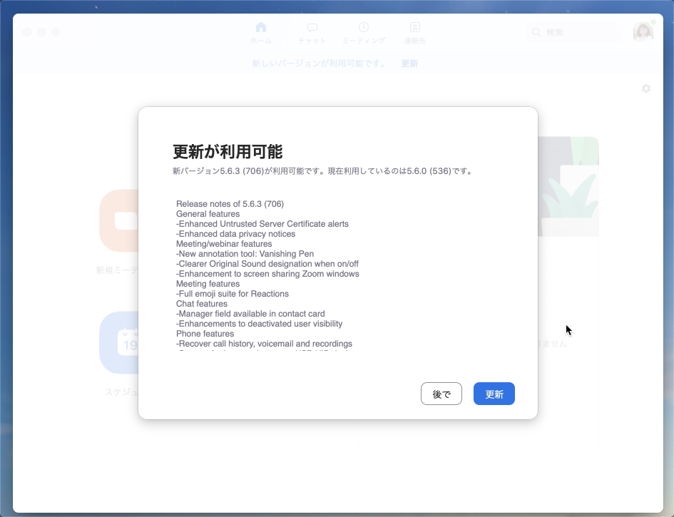 ●Zoomの最新バージョンへのアップデート方法