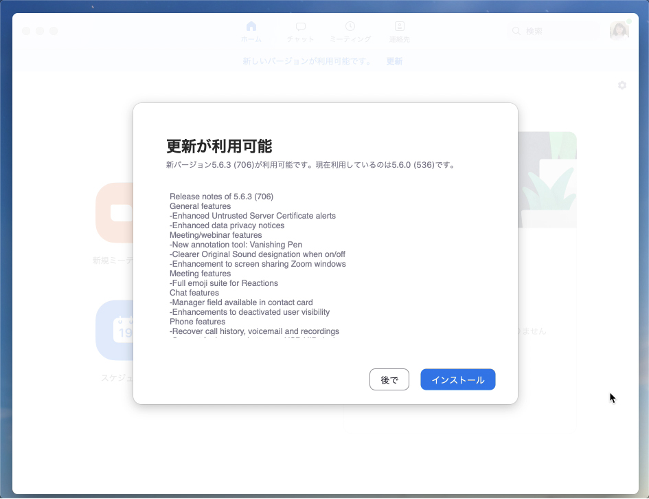 Zoomはとても頻繁にアップデートされるため、小まめにアップデートを確認し、出来るだけ常に最新バージョンを保つようにしておきましょう。